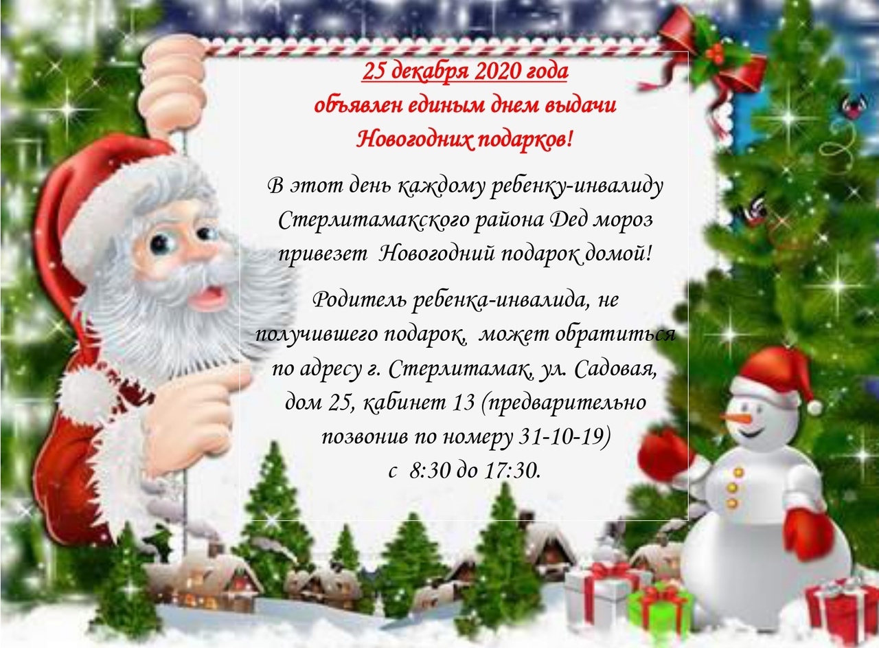 25 ДЕКАБРЯ ЕДИНЫЙ ДЕНЬ ВЫДАЧИ НОВОГОДНИХ ПОДАРКОВ