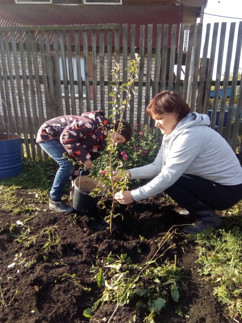Обучающиеся МОБУ СОШ д. Максимовка и их родители приняли участие в акции "Посади дерево на придомовой территории"